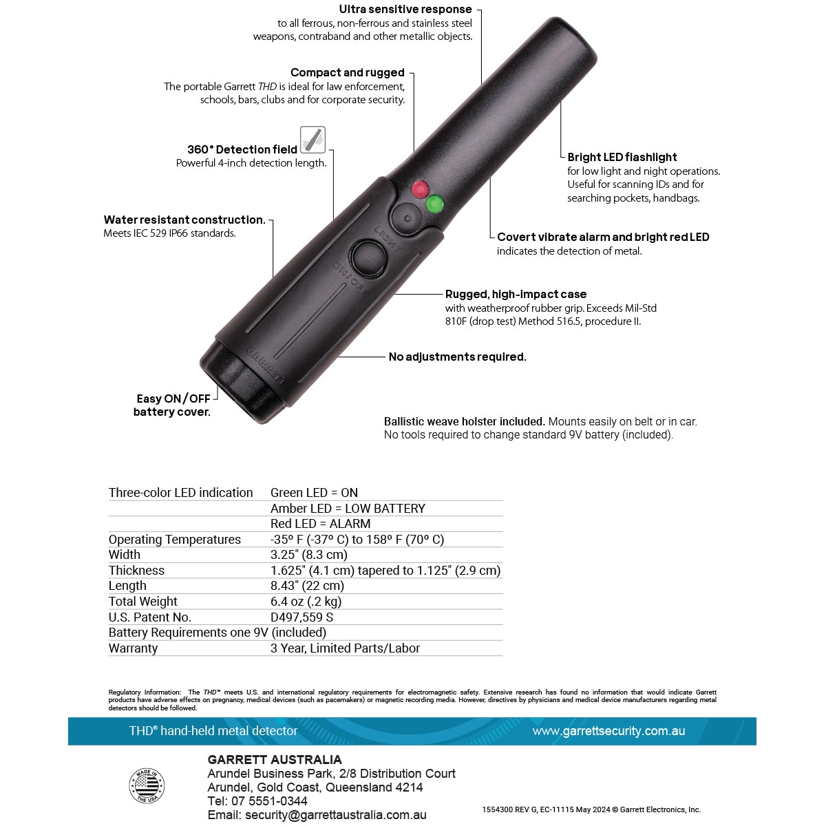 The THD's 360° detection range ensures comprehensive coverage, allowing security personnel to detect metallic objects from all angles. The pinpointing tip helps detect weapons and other threats with extreme accuracy and precision, while also minimizing false alarms.
